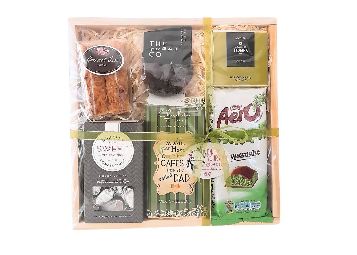 The Super Hero Dad Hamper contains a selection of sweet treats that Dad can enjoy. Made to spoil Dad today.